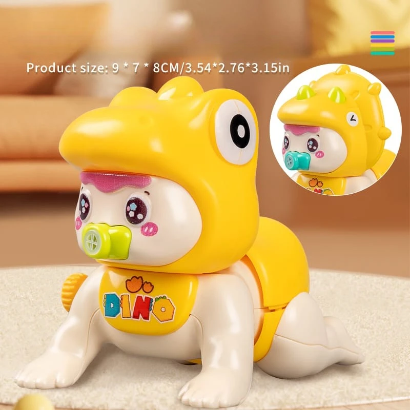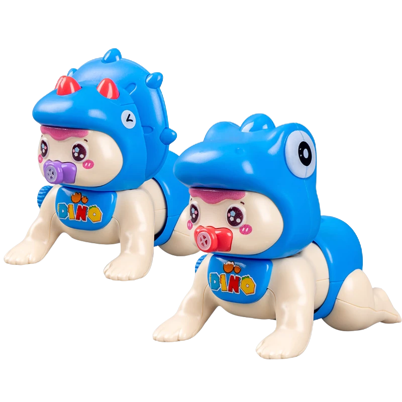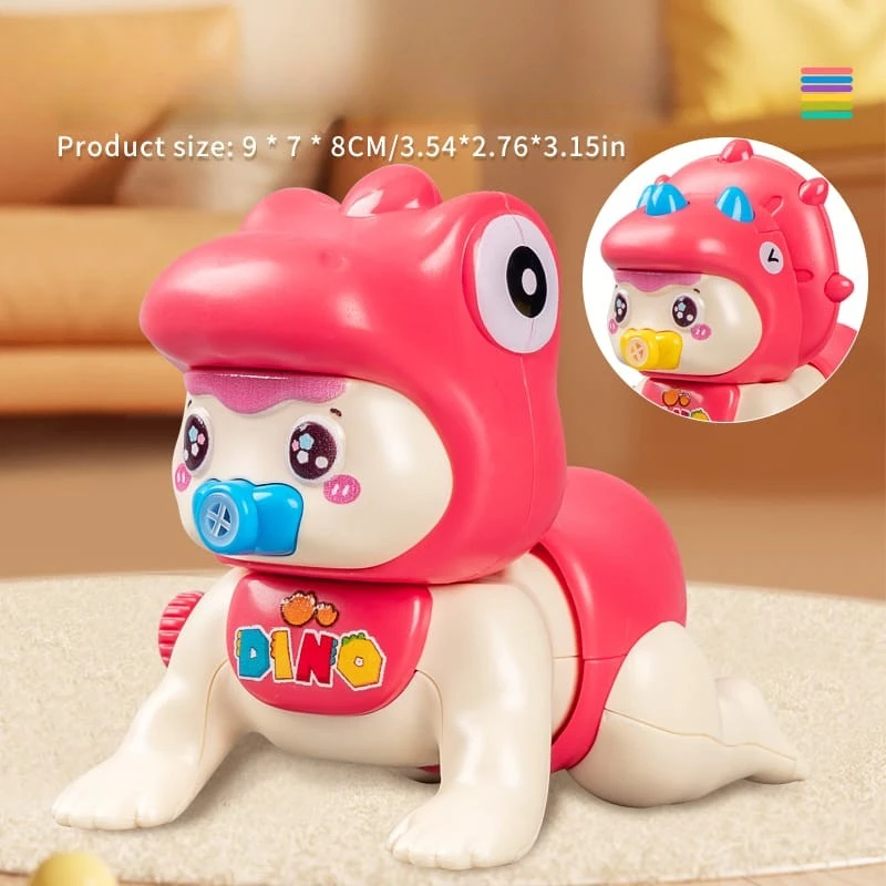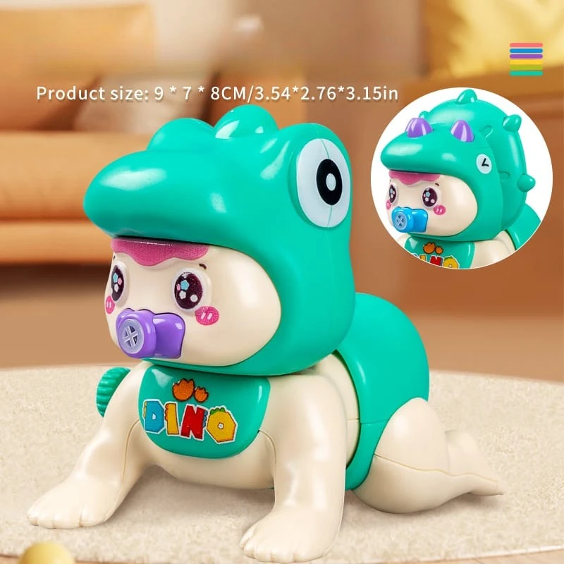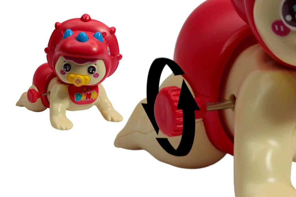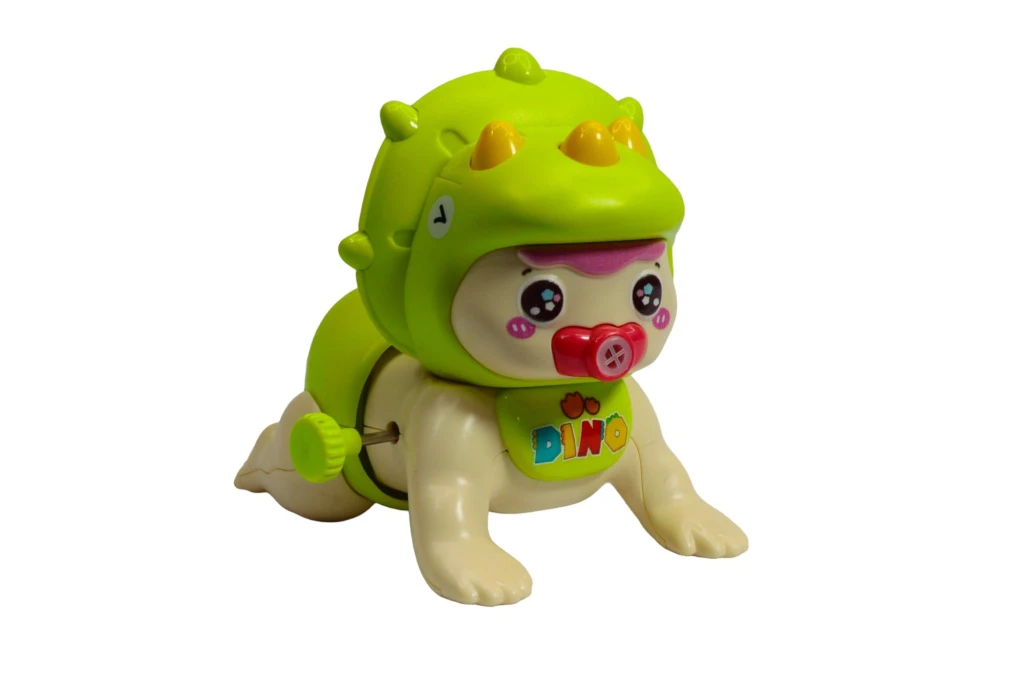Este adorable bebé a cuerda gatea solo y está listo para conquistar la prehistoria... ¡con su disfraz de dinosaurio! Ideal para entretener a los más pequeños mientras estimulan su curiosidad y motricidad.