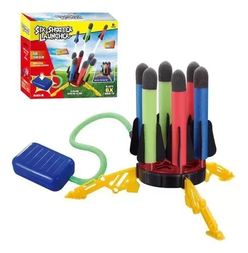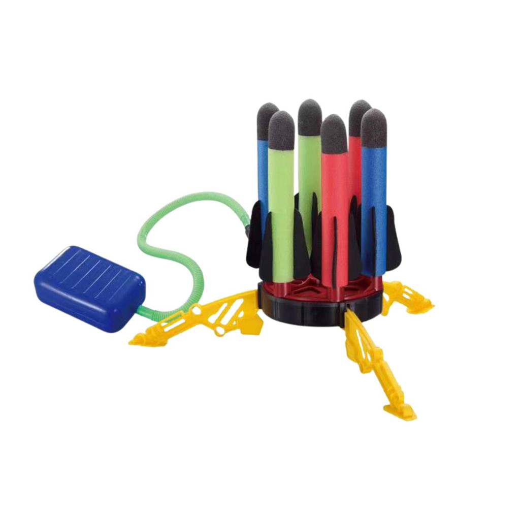 Contenido del Paquete: El set de lanzacohetes incluye 6 cohetes de espuma en 3 colores vibrantes y un soporte amarillo plegable. Ideal para que los niños quemen energía extra mientras disfrutan al aire libre.
