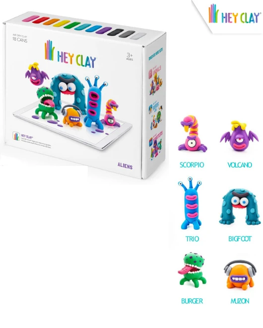 ¡Descubrí un mundo de color y creatividad con Hey Clay! Esta plastilina mágica es ultrasuave, no mancha y se seca al aire, transformando tus creaciones en divertidos personajes para jugar o decorar.