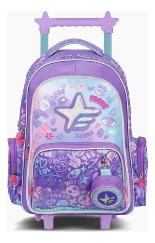 Mochila Footy 18"Hologram Star con Luz Led con carro. Esta mochila es perfecta para los amantes del estilo y la funcionalidad. Su diseño llamativo con hologramas y luces led atraerá todas las miradas, mientras que sus múltiples compartimientos y bolsillos aseguran que puedas llevar todo lo necesario de manera organizada. Ideal tanto para la escuela como para paseos, combina moda y practicidad en un solo producto. Además, el carro facilita su transporte, haciendo que sea más cómodo y ligero llevar tus pertenencias dondequiera que vayas. ¡Una elección moderna y divertida para cualquier ocasión!