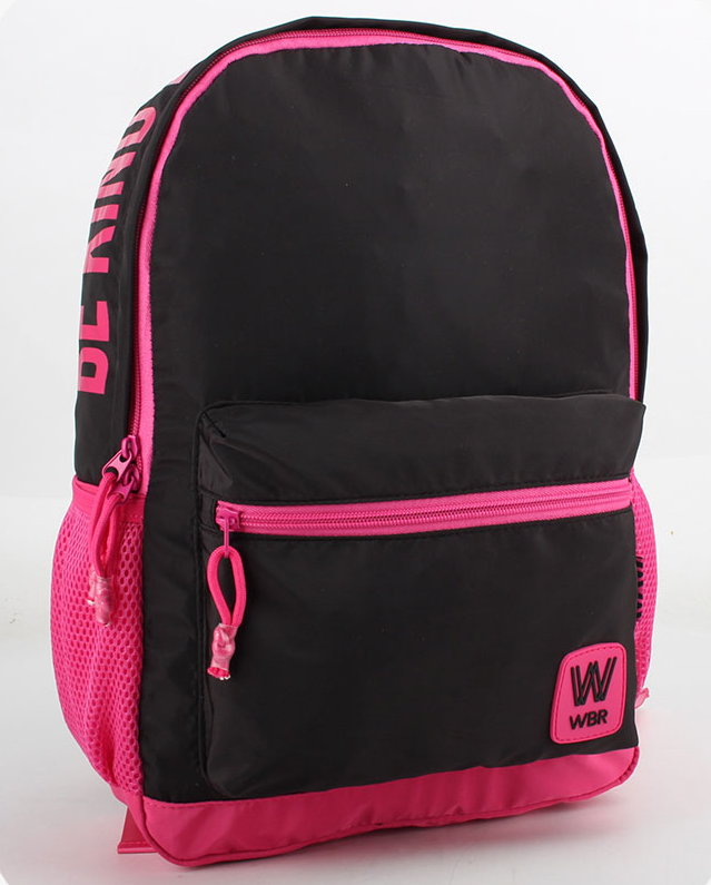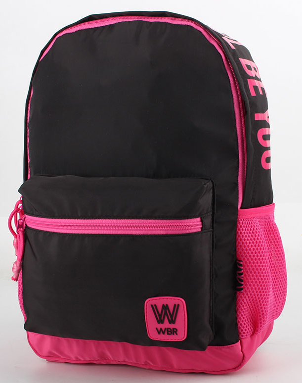 ✨ Destaca con estilo con la mochila WBR en negro y fucsia ✨.