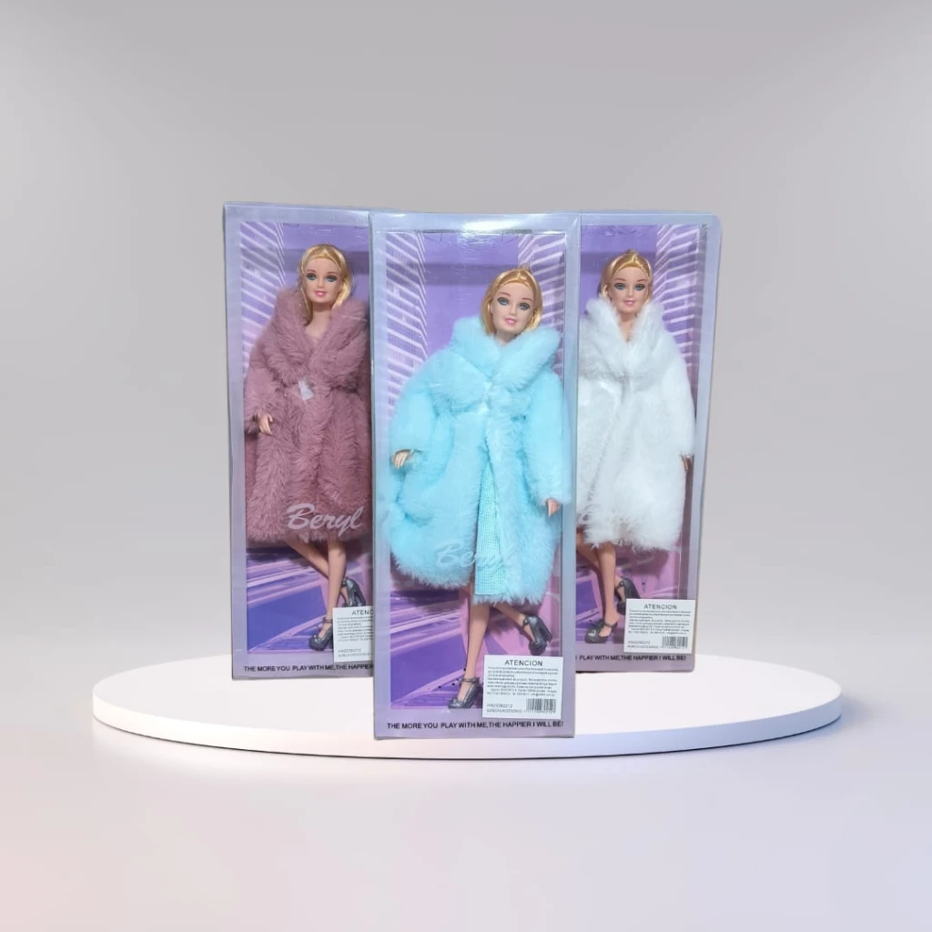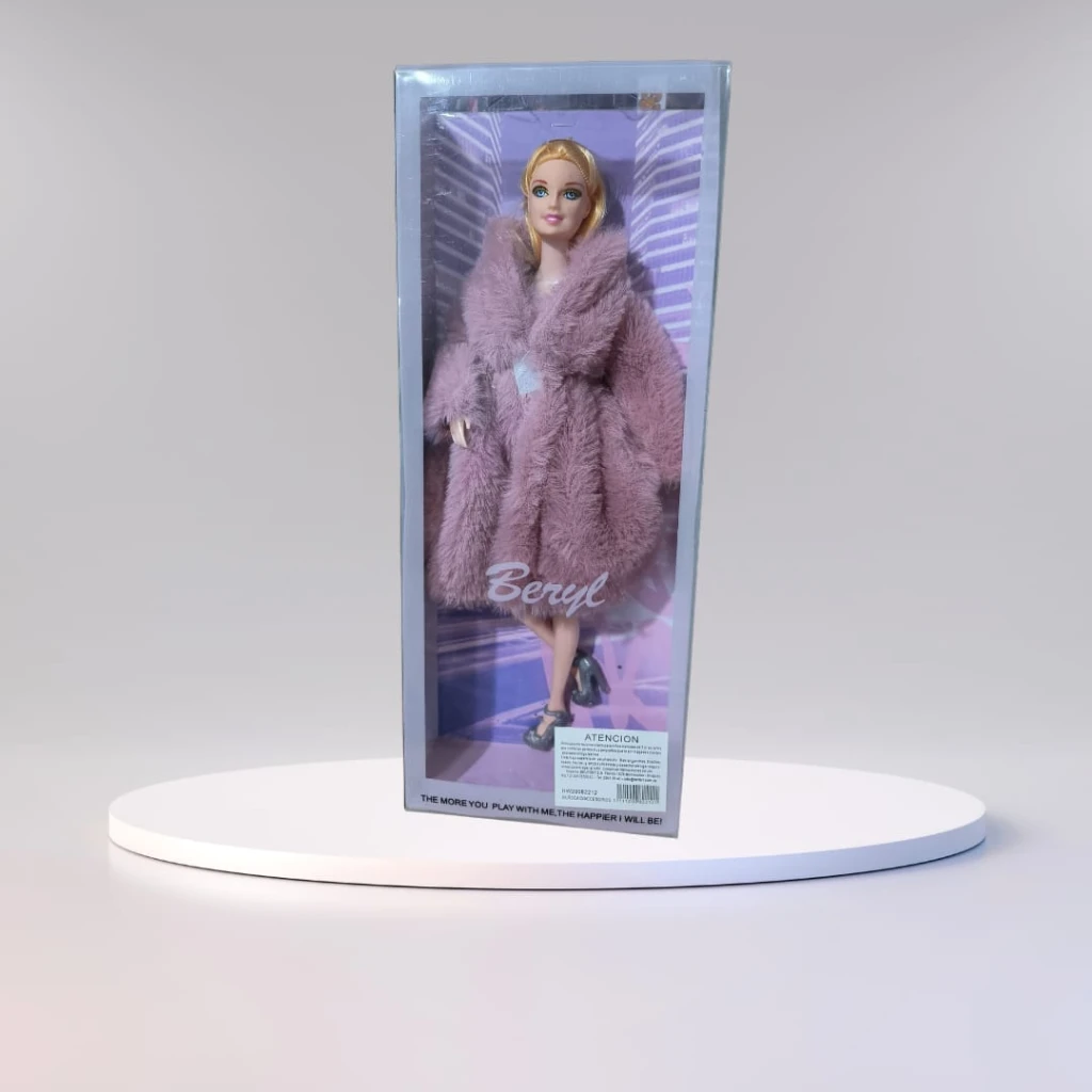 La muñeca Beryl es una verdadera sensación en el mundo de la moda. Con un estilo impecable y atención al detalle, luce un elegante tapado confeccionado con tejido de alta calidad que resalta su figura. Complementa su look con un par de sofisticados tacos que le dan el toque final a su atuendo de pasarela.