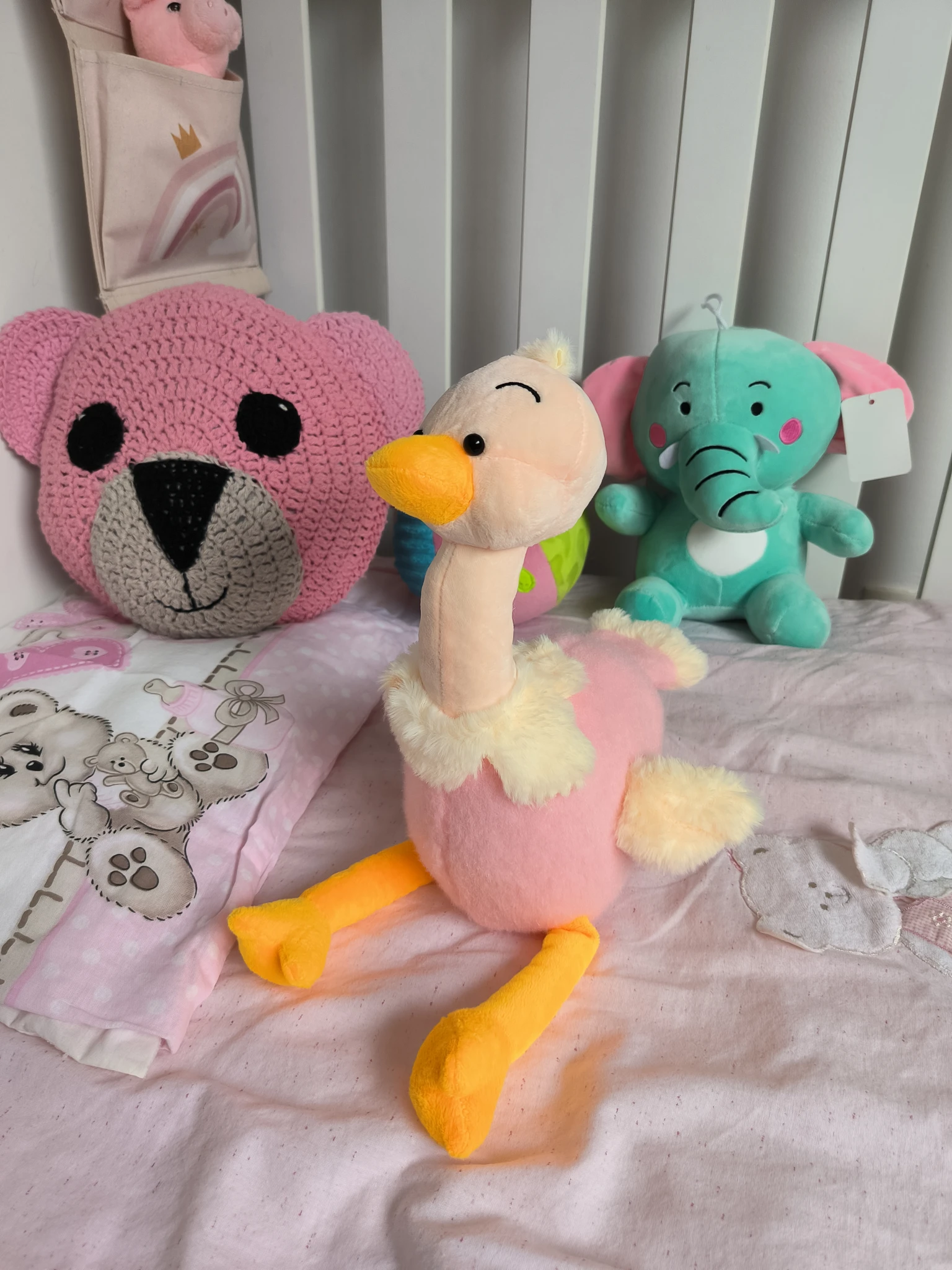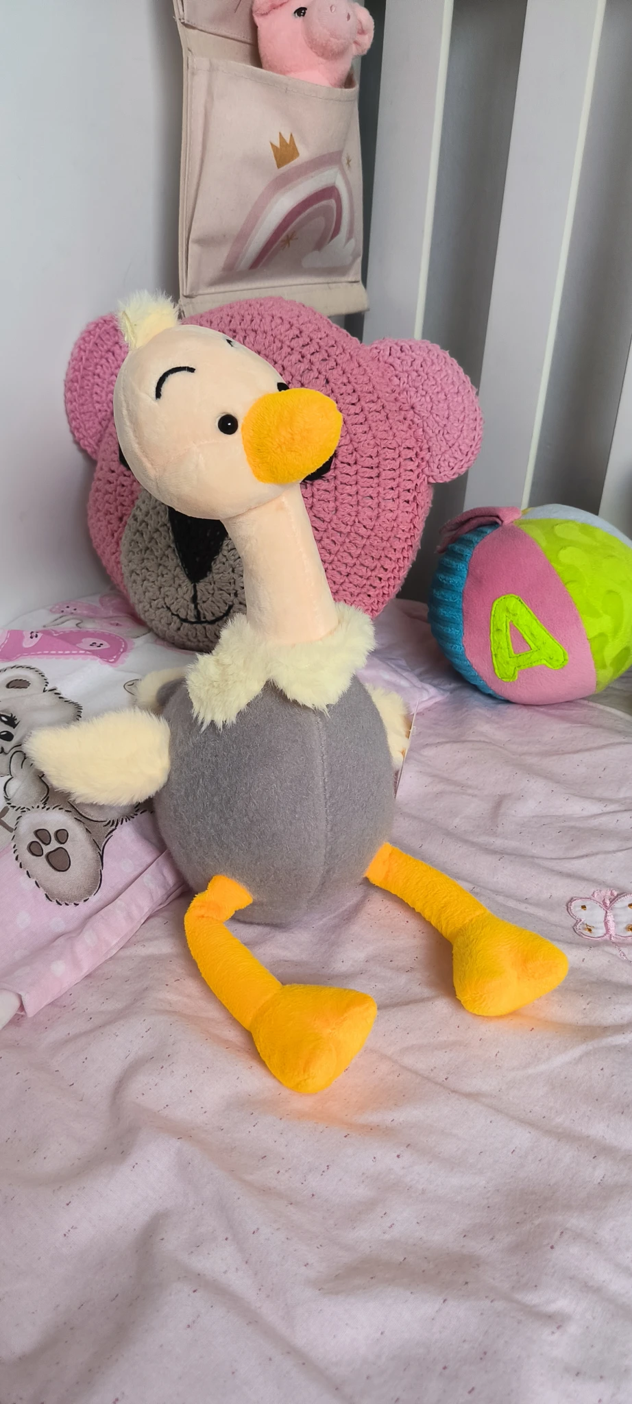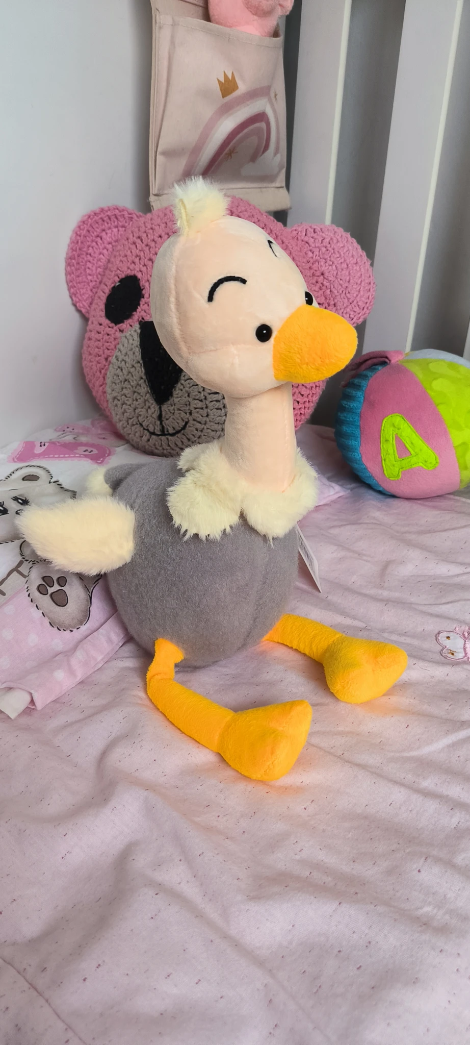 Este elegante avestruz de peluche es tan suave como encantador. Con su largo cuello y patas divertidas, se convierte en el compañero ideal para decorar o abrazar.