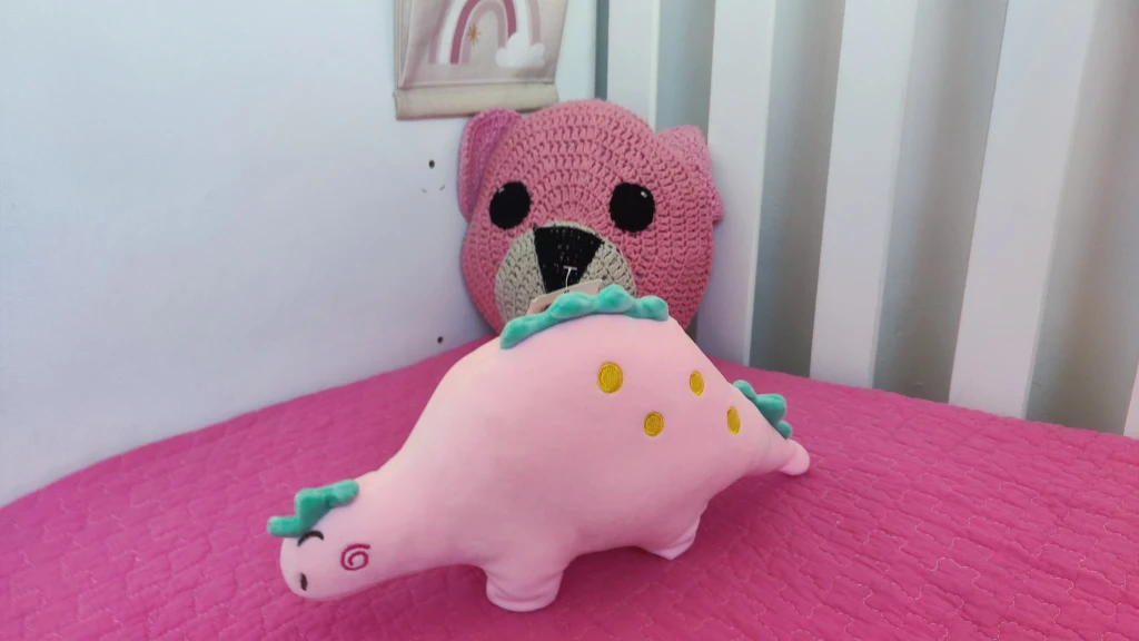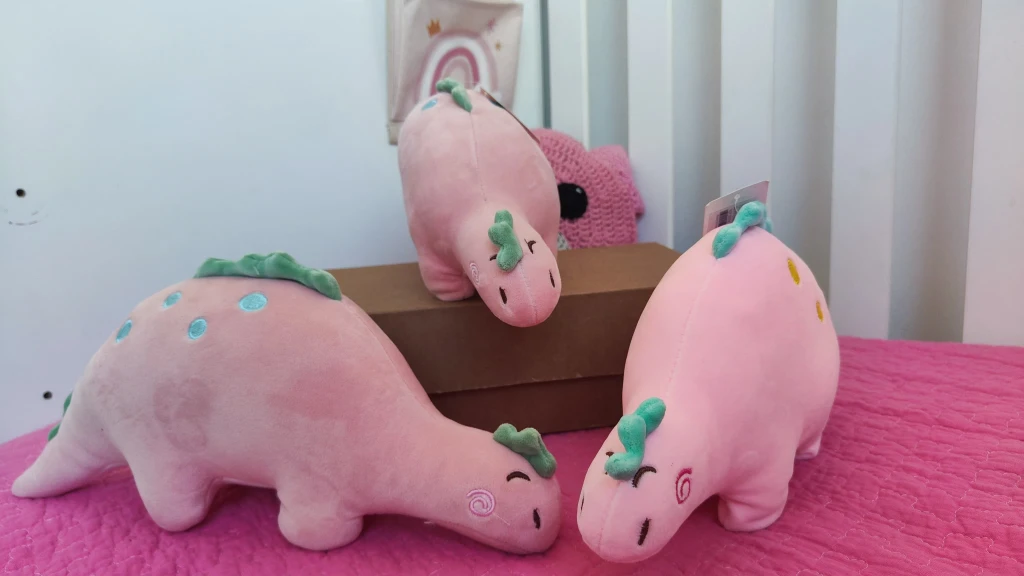 ¡Un dinosaurio suave y adorable que llegó para quedarse! Este peluche de 30 cm de largo viene en dos tonos de rosa: claro y oscuro (se venden por separado), perfecto para decorar, regalar o acompañar cada aventura.