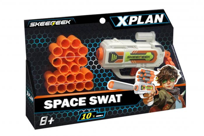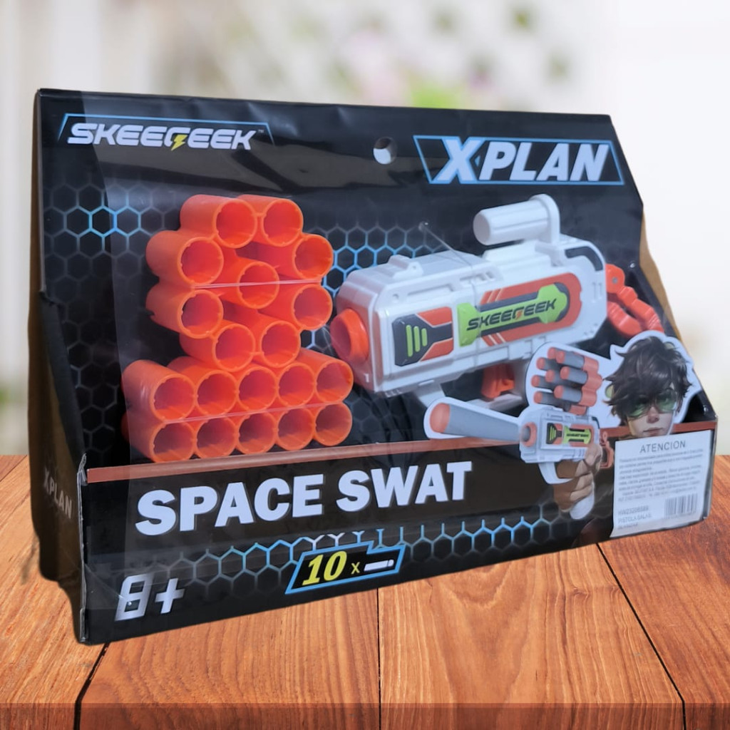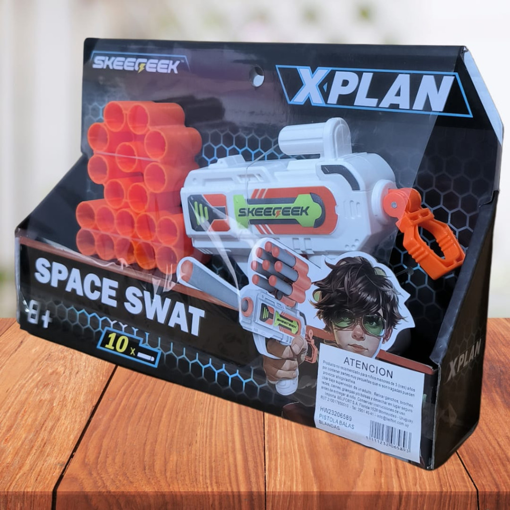 La pistola X-Plan X10 presenta un diseño moderno y atractivo, con detalles en colores vibrantes que capturan la atención y mejoran la experiencia de juego.