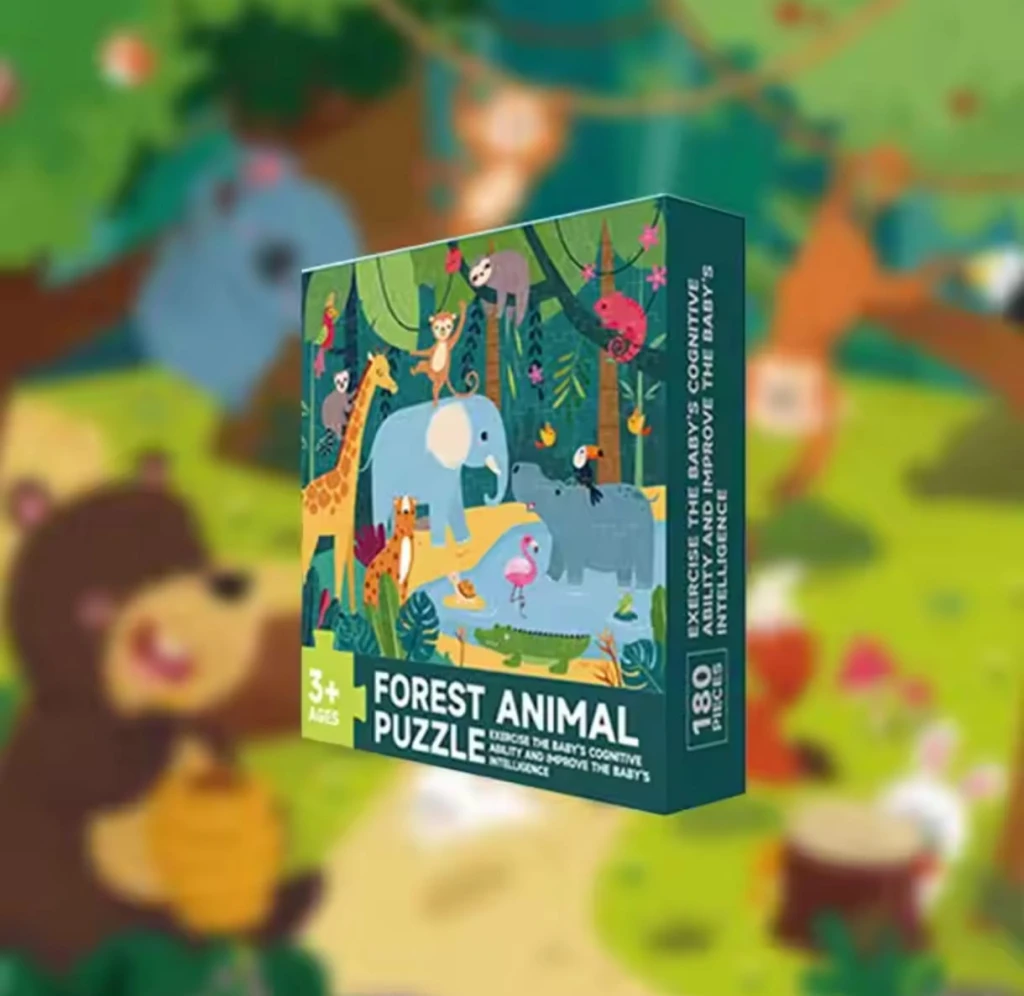 Diviértete armando este colorido puzzle de 180 piezas, perfecto para desarrollar la concentración y la motricidad fina. Con imágenes encantadoras de animales, es ideal para niños y toda la familia.
