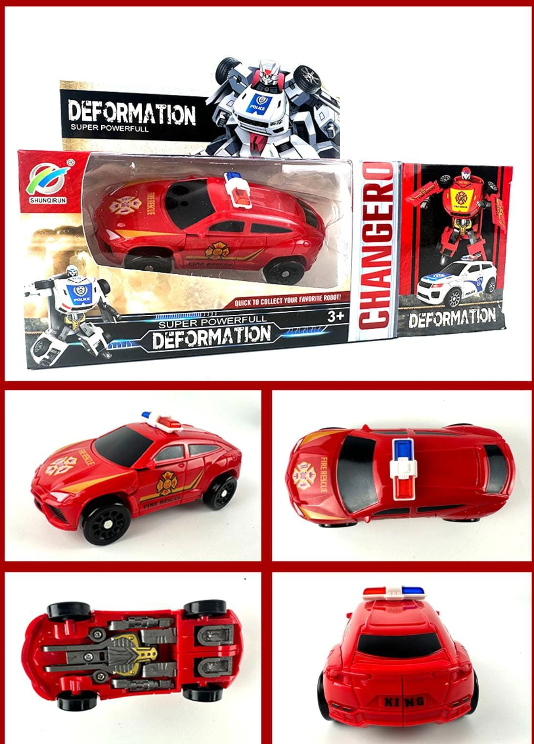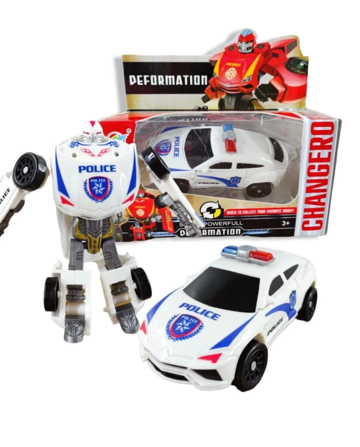 El Robot Transformer Bombero/Policía es un juguete que combina la emoción de un robot transformable 🤖 con el dinamismo de un patrullero 🚓 o auto bombero 🚒. Está disponible en dos modelos: policía y bombero. Fabricado con plástico resistente y seguro, garantiza durabilidad 💪. Además, su diseño realista captura la atención de los niños, fomentando su imaginación ✨.