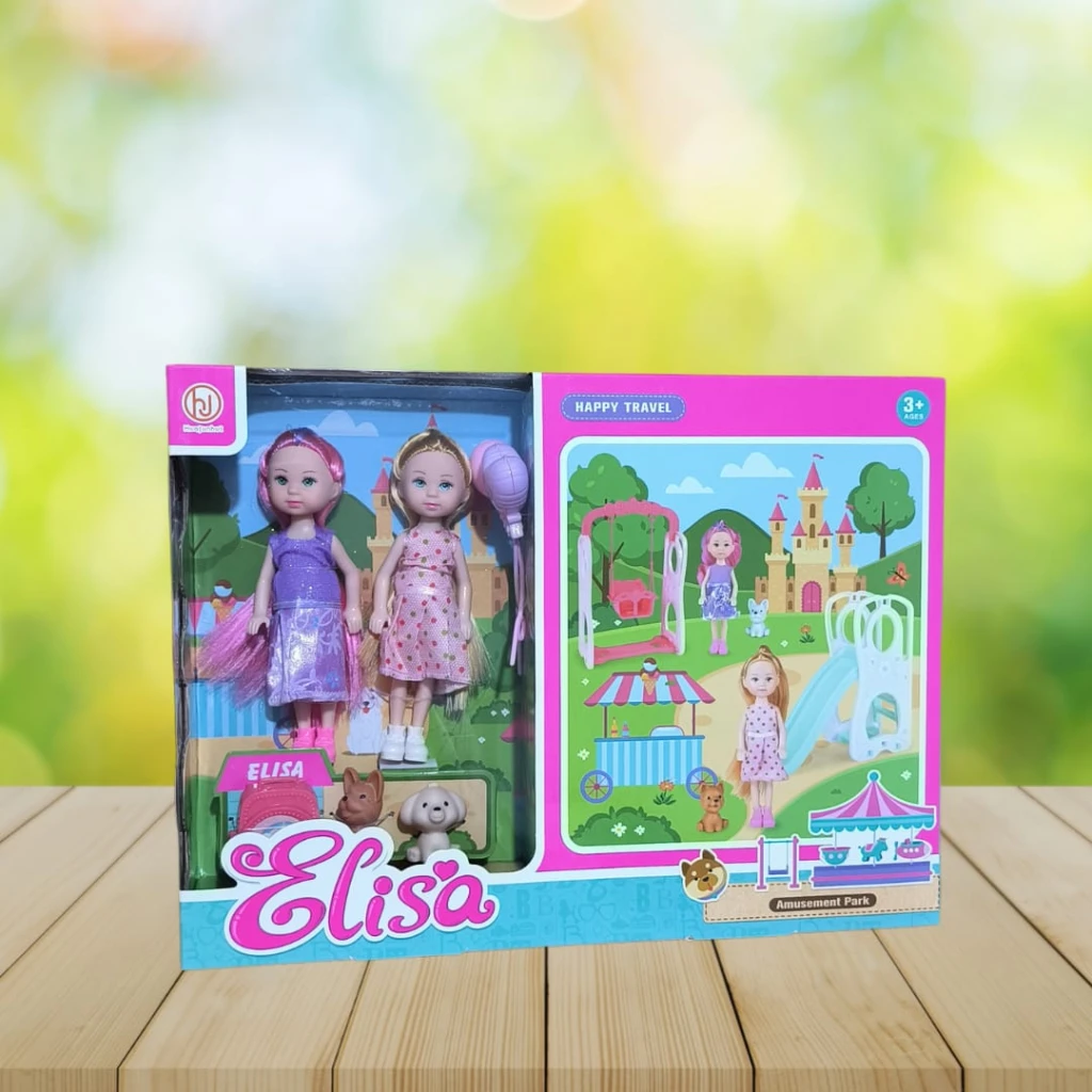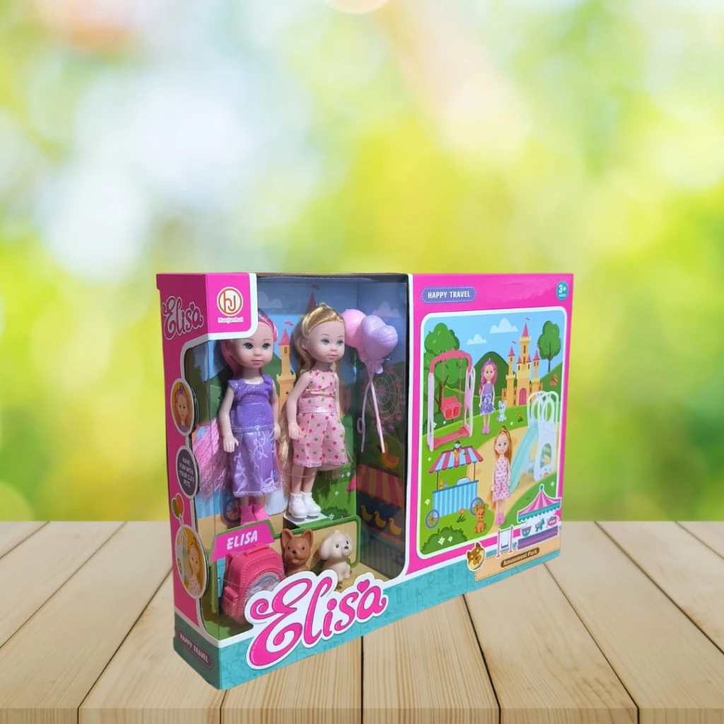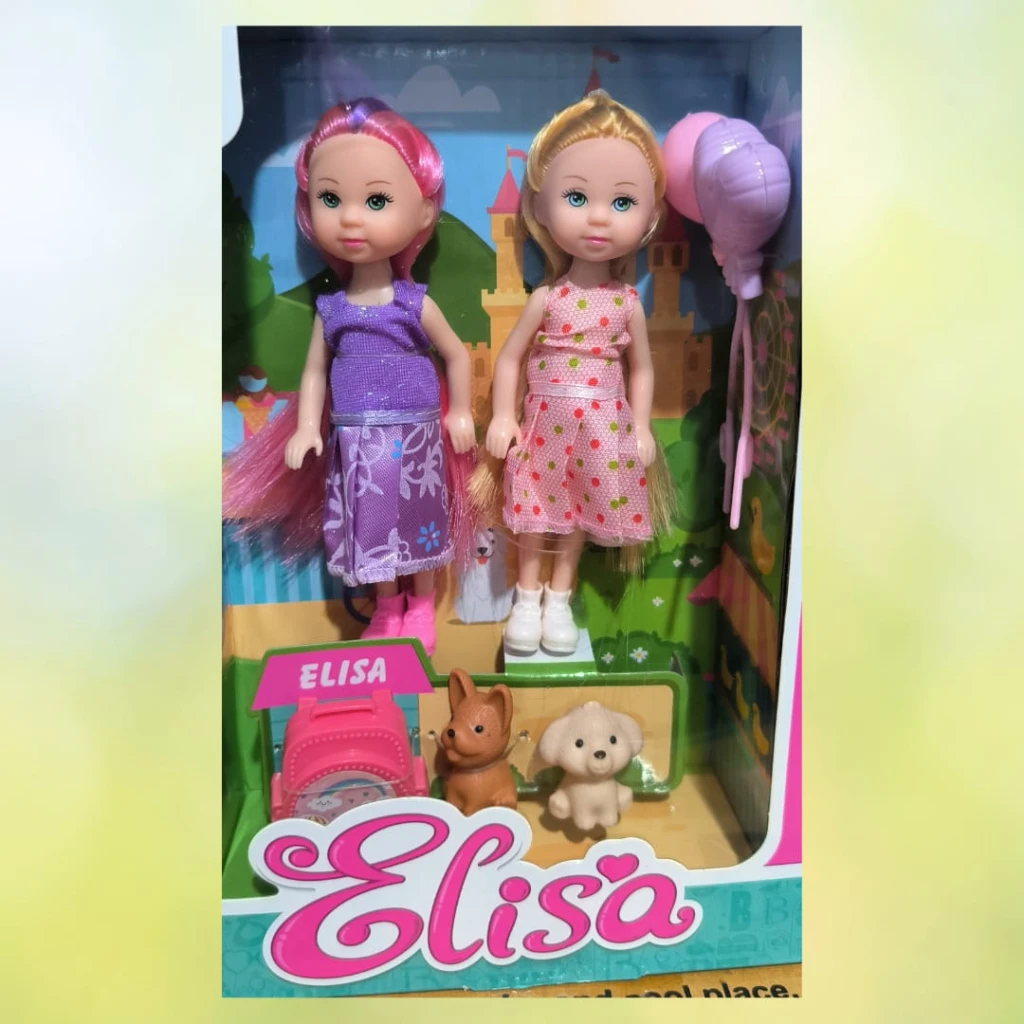 Este encantador set incluye dos muñecas Elisa, cada una con su mascota fiel, para que los niños exploren la amistad y el cuidado a través del juego.
