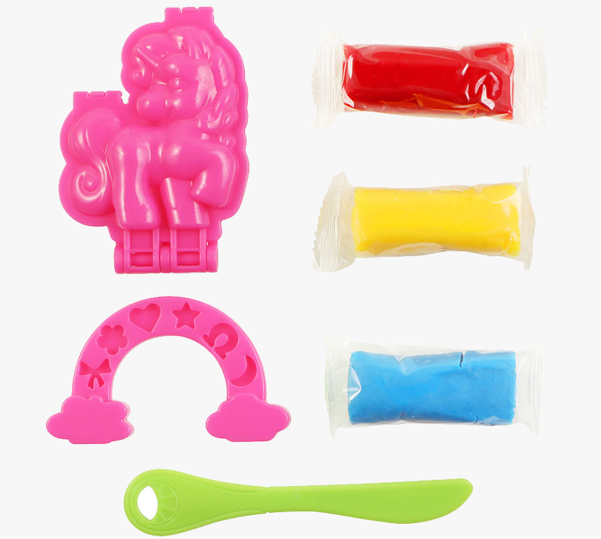 Figuras mágicas y brillantes: Ideal para aquellos que sueñan con mundos llenos de fantasía. Trae unicornios para moldear y arcoiris.
