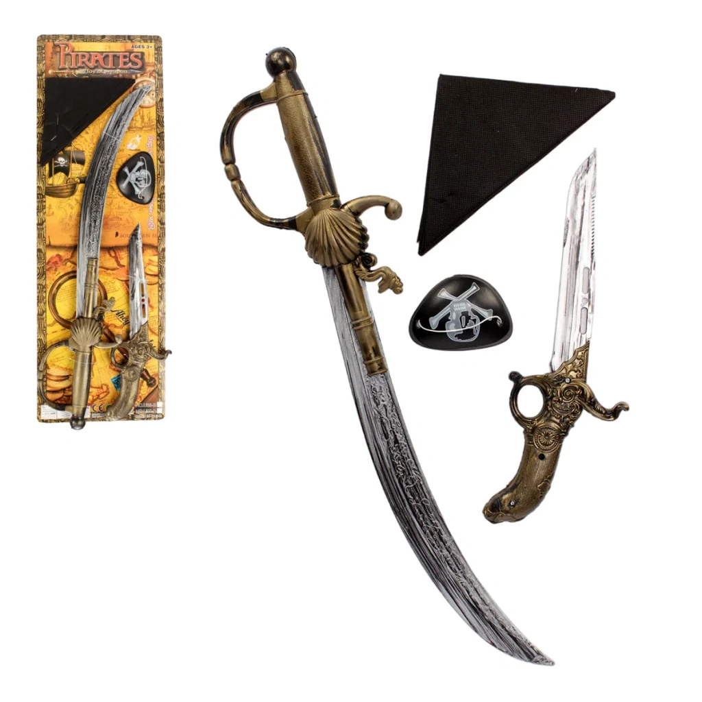 Este divertido conjunto incluye cuatro piezas de pirata, perfectas para juegos de rol, fiestas temáticas o simplemente para que los pequeños piratas se diviertan en casa.